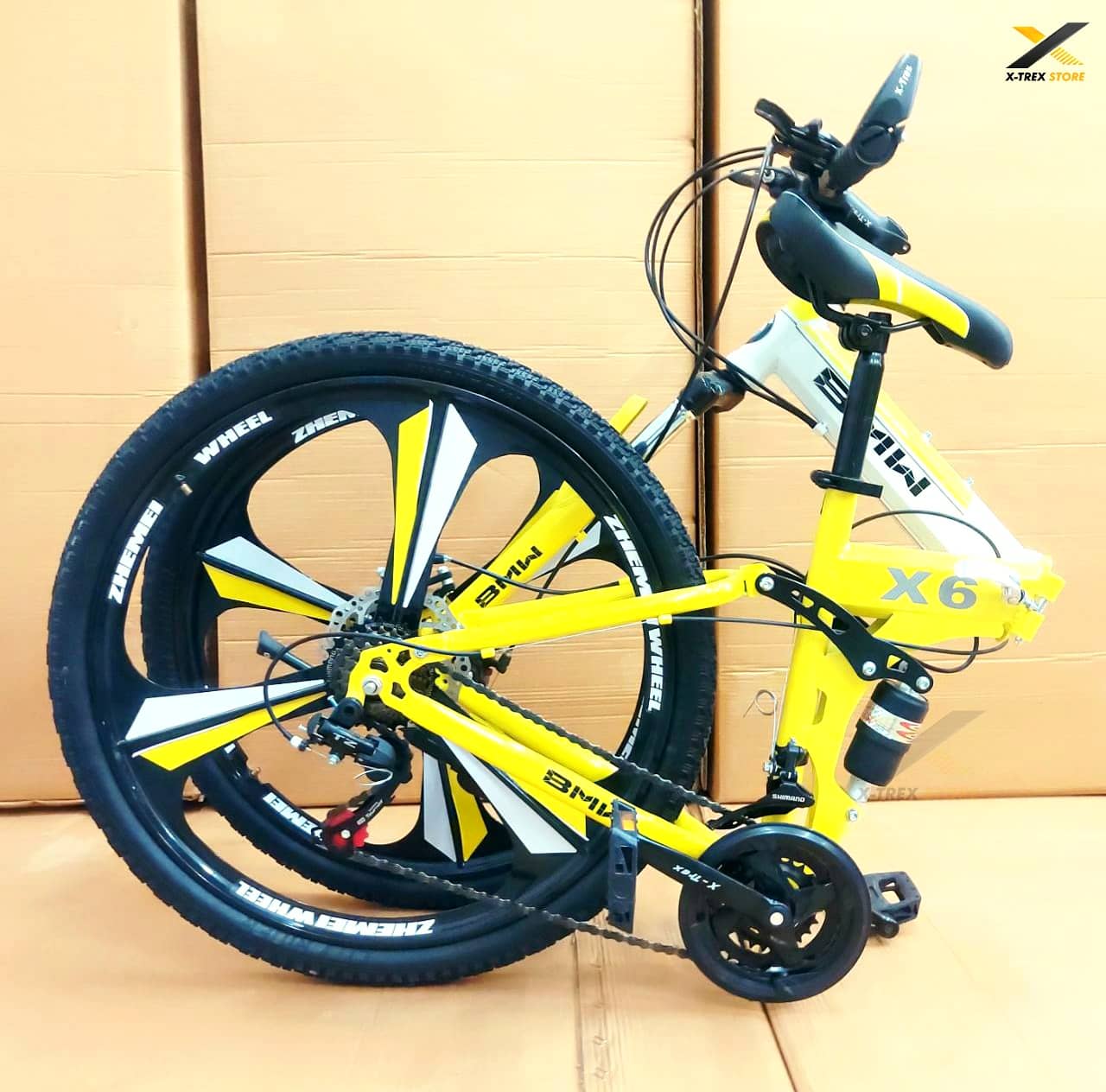 LET YOURSELF ENJOY ON WEEKENDS BY DOING CYCLING WITH FAMILY OR FRIENDS AT BEACH OR ROAD OR HILLS OR SNOW OR ANY OTHER SURFACES WITH EASE AND FUN OR YO CAN DO SOME SERIOUS CYCLING DAILY TO REDUCE SOME KGS AND STAY FIT, HEALTHY AND FEELING FRESH EVERYDAY. FOLDABLE BIKE IS SPECIALIZED OFF ROAD AS WELL AS ON ROAD BICYCLE THAT HAS 2 INCH TYRES AND 26 INCH RIM WHICH CAN GIVE SMOOTH RIDING IN LOW PRESSURE. IT HAS QUICK RELEASE SEAT POST. 18 INCH CARBON STEEL FRAME SUITABLE FOR HEIGHT RANGING FROM 4.8 FEET TO 6 FEET WHICH CAN TAKE LOAD OF 130 KGS. • Material: CARBON Steel • Speed : 21 Gears • Rim & Tyre : 26″ X 2″ width • Derailleur : FR TZ 30 And RD TY 300 • Brake : Front & Rear Disc brakes • Frame: 18 INCH XL CARBON STEEL | Fork: Hiten steel rigid fork | Chain: KMC C50 • Gear Set: Thumb Shift EF 500-21speed | Tourney RD-TY 300 Rear Derailleur 21-speed Hanger Mount • Dual Disc Brake : Alloy silver mechanic disc brakes, with 160mm rotor disc